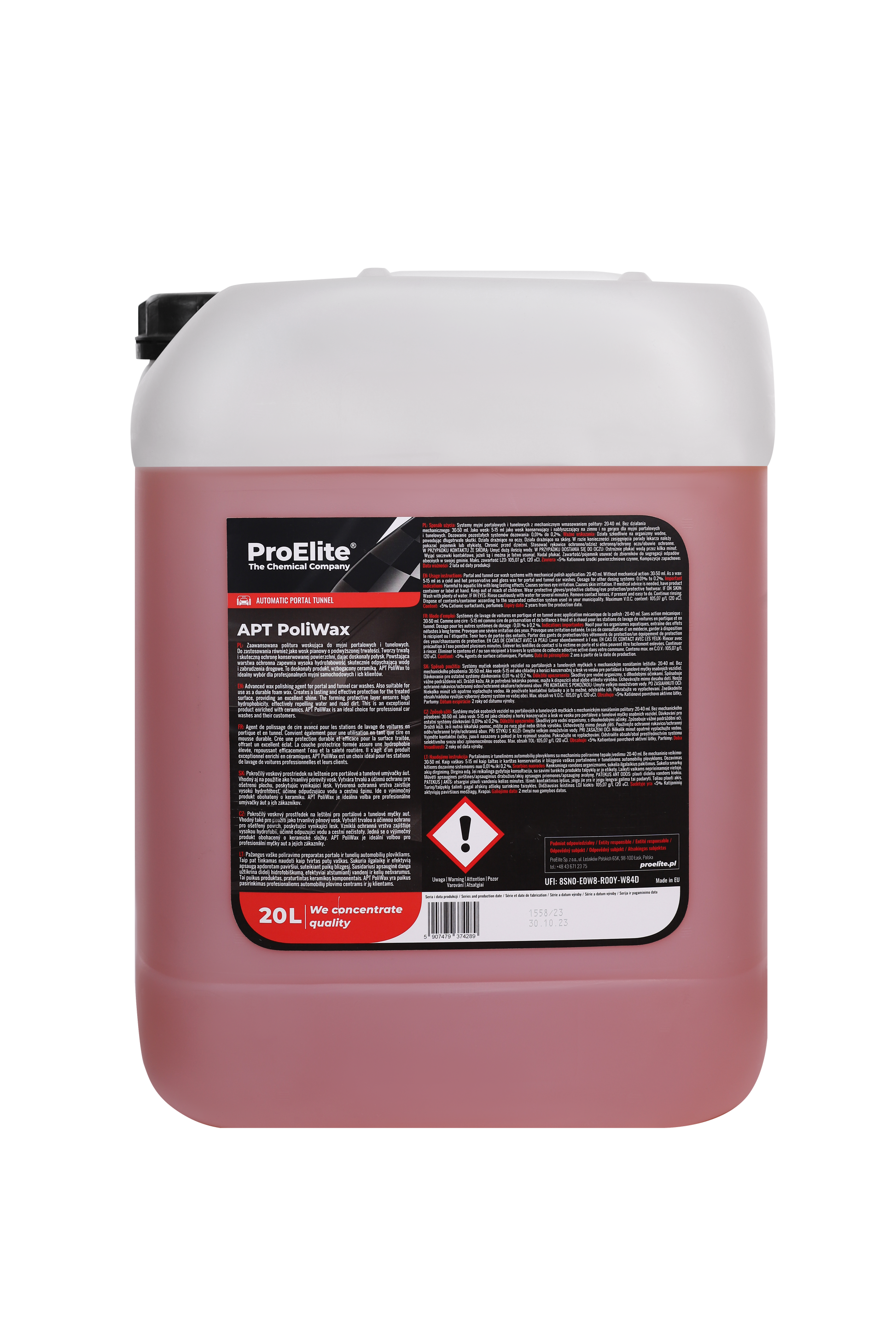 - Wachs für Portal- und Tunnelwaschanlagen: Dosieren Sie 5-15 ml APT PoliWax pro Liter Wasser, sowohl für kalte als auch heiße Anwendungen.