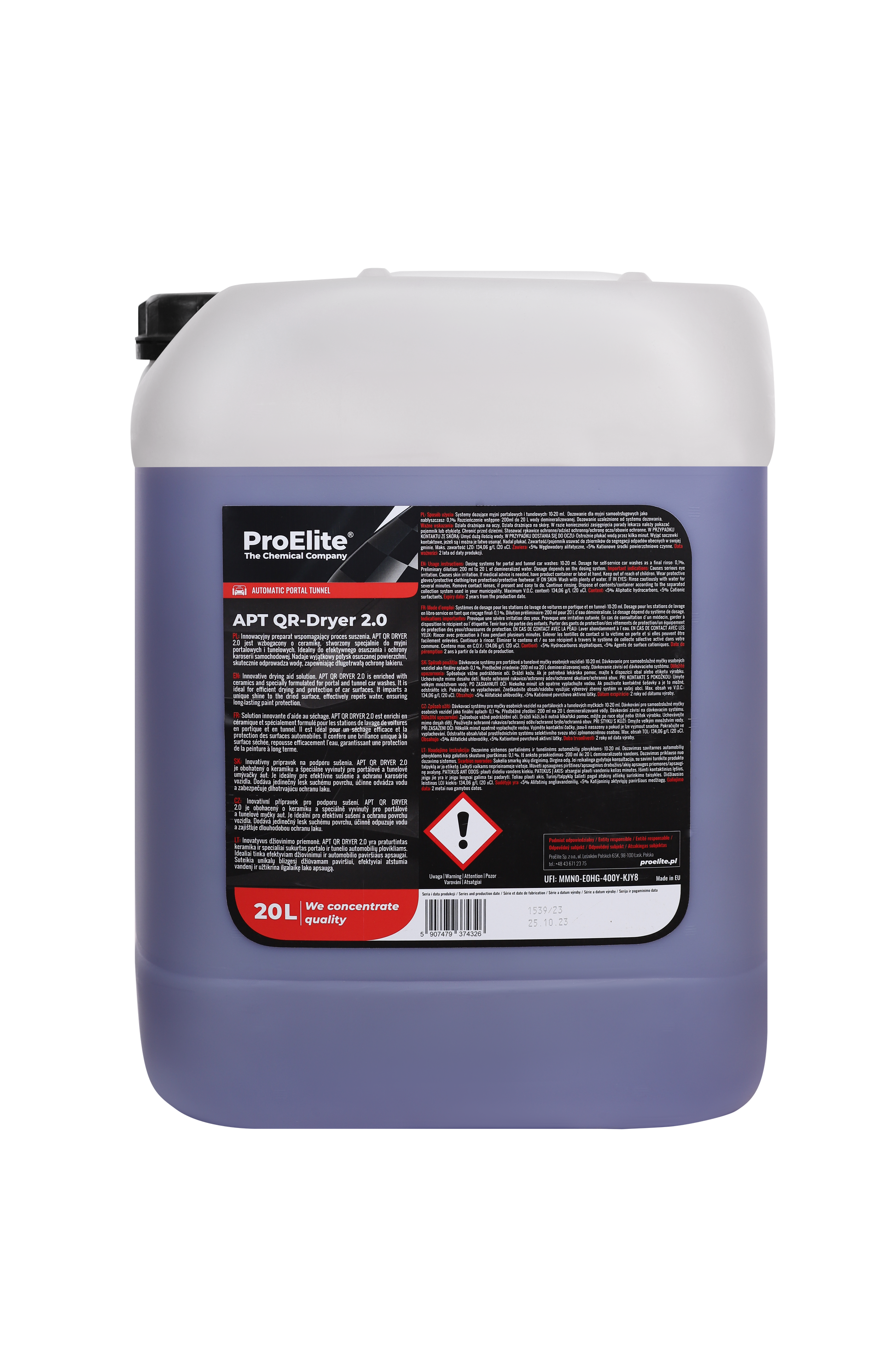 APT QR-Dryer 2.0 ist ein leistungsstarker Trocknungswachs, das speziell für den effektiven Trocknungsprozess von Autolack in Portal- und Tunnelwaschanlagen entwickelt wurde. Dank seiner innovativen Formel, die auf sorgfältig ausgewählten Zutaten basiert, entfernt dieses Produkt effektiv Wasserfilme von der Lackoberfläche und beseitigt zuverlässig alle Spuren von Wassertropfen.