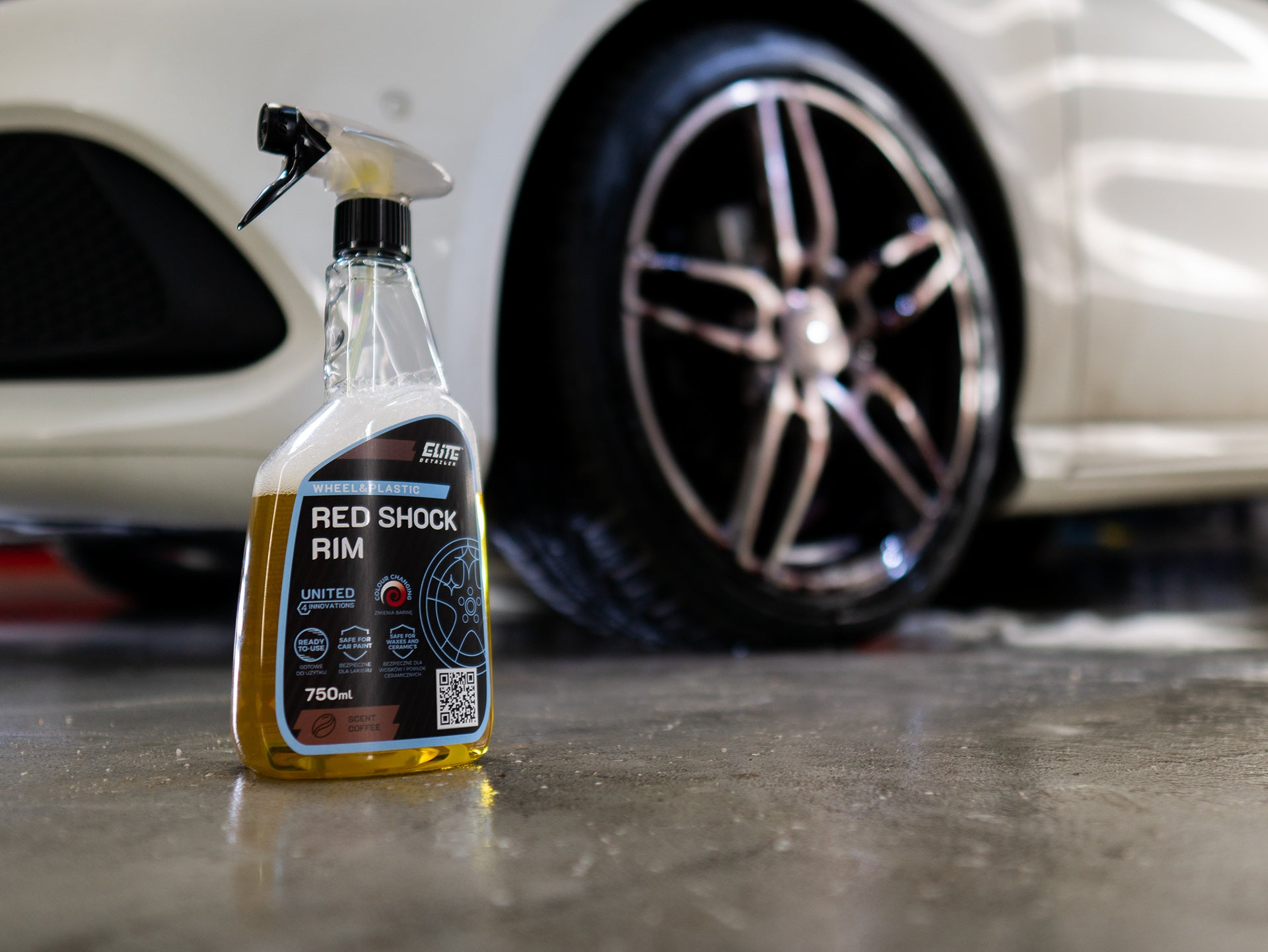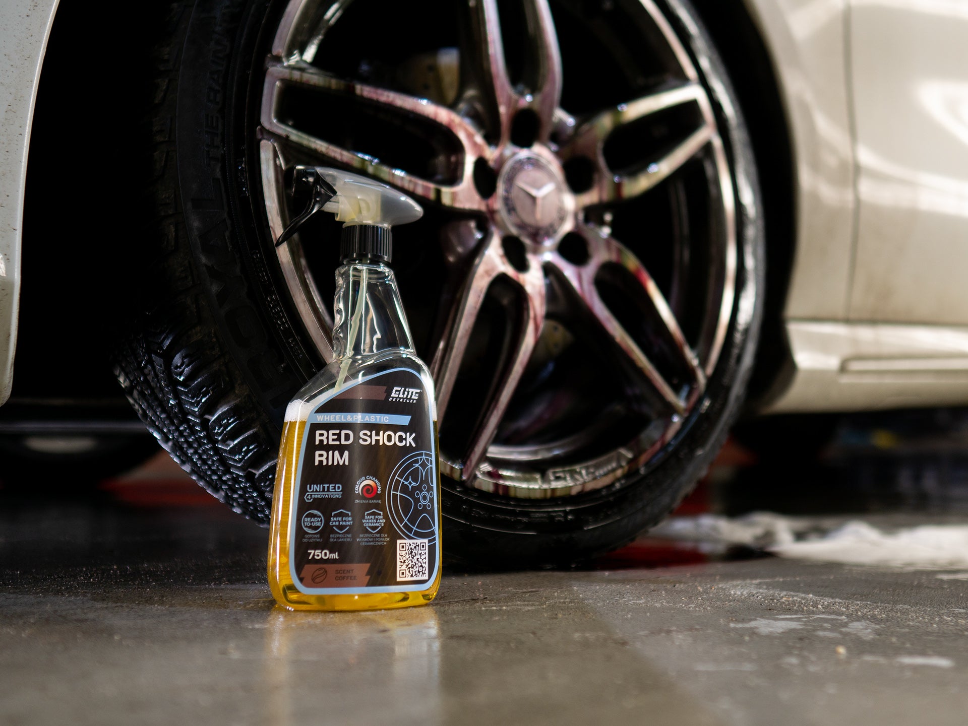 Red Shock Rim ist ein hochwirksames Gelpräparat zur Entfernung von metallischen Verunreinigungen und Ablagerungen von Bremsbelägen. Es hat einen neutralen pH-Wert und verströmt einen angenehmen Kaffeearoma. Das Produkt erzeugt den „blutenden Felgen“-Effekt, bei dem sich alle metallischen Verunreinigungen rot-violett färben. Red Shock Rim ist sicher für alle Felgentypen, einschließlich Chrom, Nickel und lackierte Oberflächen. Die spezielle Gelkonsistenz sorgt für eine lange Verweilzeit auf der Oberfläche, was tief in die Verunreinigungen eindringt und diese gründlich entfernt.